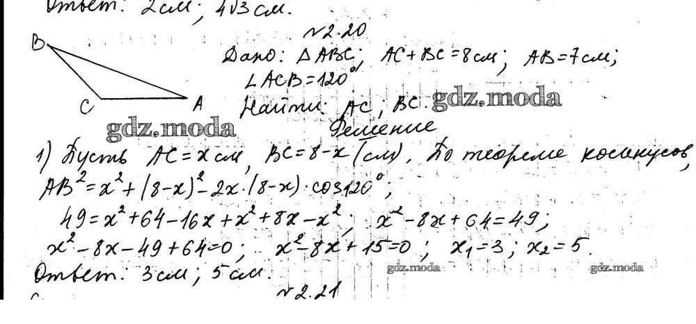 ОТВЕТ на задание № 2.20 Учебник по Геометрии 9 класс Мерзляк Углубленный уровень