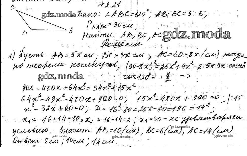 ОТВЕТ на задание № 2.21 Учебник по Геометрии 9 класс Мерзляк Углубленный уровень