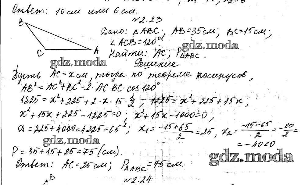 ОТВЕТ на задание № 2.23 Учебник по Геометрии 9 класс Мерзляк Углубленный уровень
