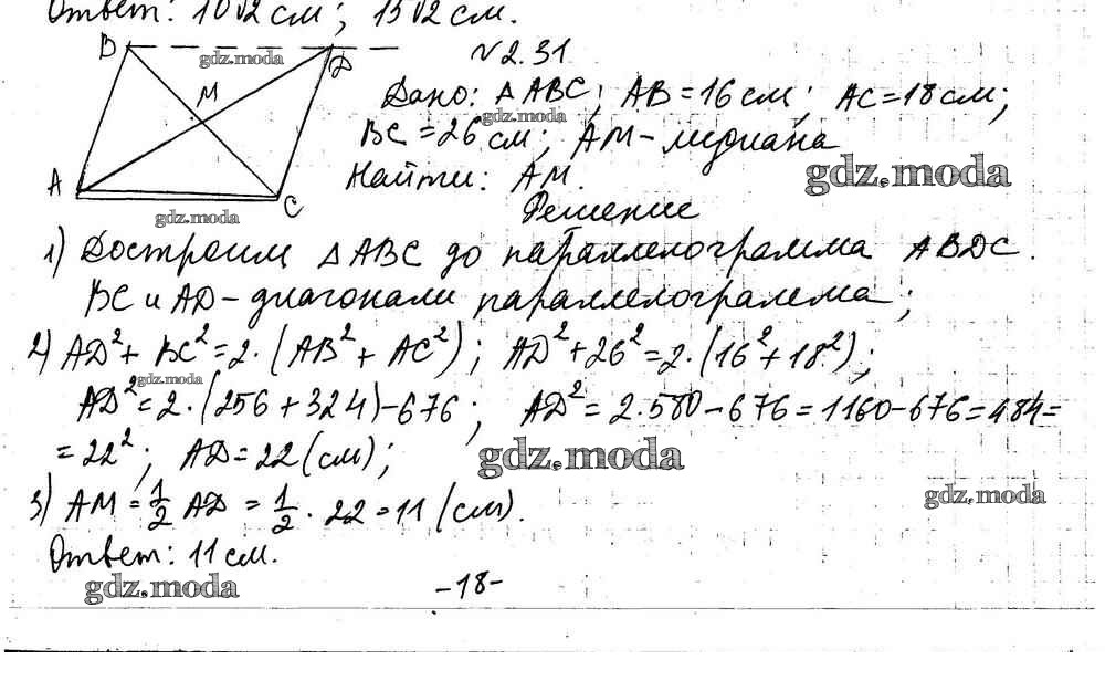 ОТВЕТ на задание № 2.31 Учебник по Геометрии 9 класс Мерзляк Углубленный уровень
