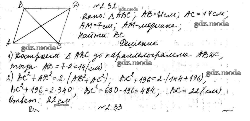 ОТВЕТ на задание № 2.32 Учебник по Геометрии 9 класс Мерзляк Углубленный уровень