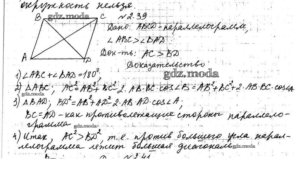 ОТВЕТ на задание № 2.39 Учебник по Геометрии 9 класс Мерзляк Углубленный уровень