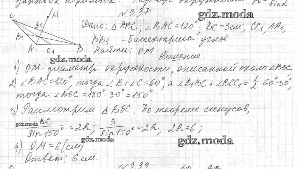 ОТВЕТ на задание № 3.37 Учебник по Геометрии 9 класс Мерзляк Углубленный уровень