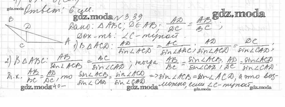 ОТВЕТ на задание № 3.39 Учебник по Геометрии 9 класс Мерзляк Углубленный уровень