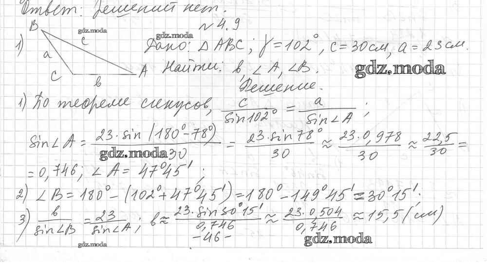 ГДЗ решение к заданию № 4.9 Геометрия 9 класс Мерзляк А.Г. Вентана-граф 2019 Углубленный уровень ФГОС бесплатно на гдз.мода!