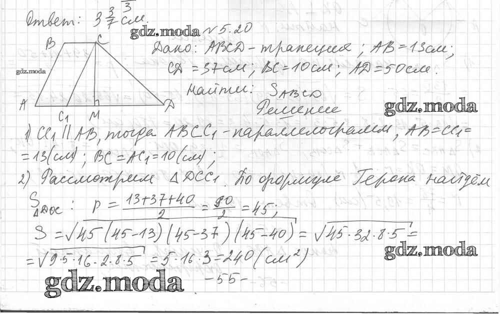 ОТВЕТ на задание № 5.20 Учебник по Геометрии 9 класс Мерзляк Углубленный уровень