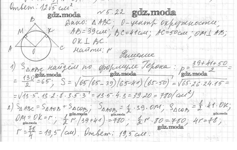 ОТВЕТ на задание № 5.22 Учебник по Геометрии 9 класс Мерзляк Углубленный уровень