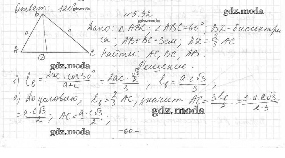 ОТВЕТ на задание № 5.32 Учебник по Геометрии 9 класс Мерзляк Углубленный уровень
