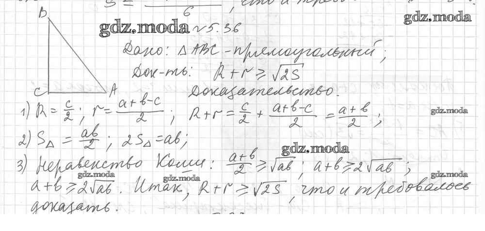 ОТВЕТ на задание № 5.36 Учебник по Геометрии 9 класс Мерзляк Углубленный уровень
