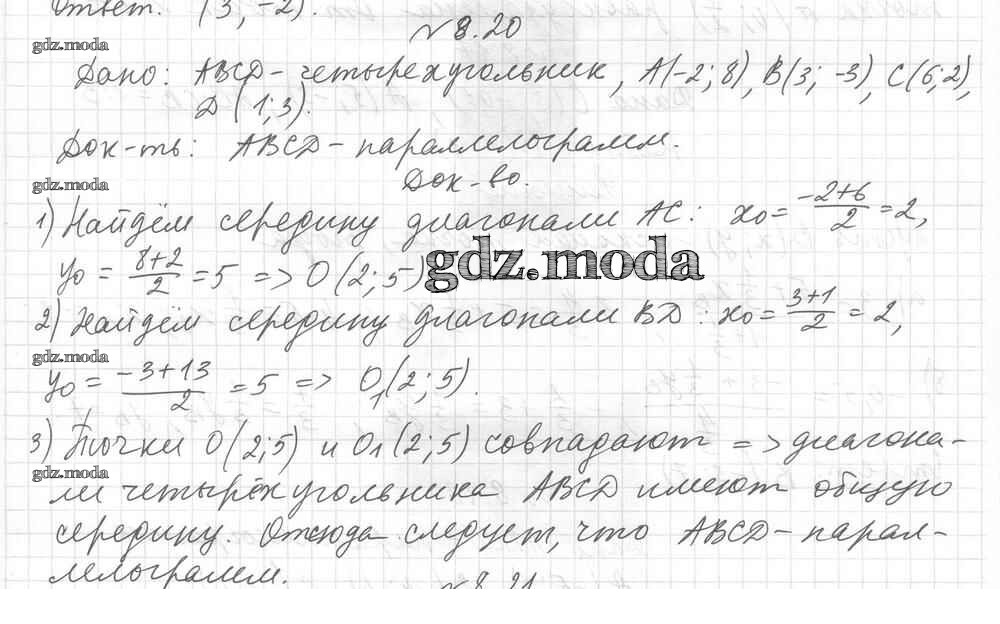 ОТВЕТ на задание № 8.20 Учебник по Геометрии 9 класс Мерзляк Углубленный уровень
