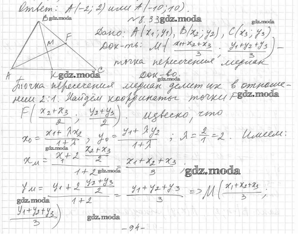 ОТВЕТ на задание № 8.33 Учебник по Геометрии 9 класс Мерзляк Углубленный уровень