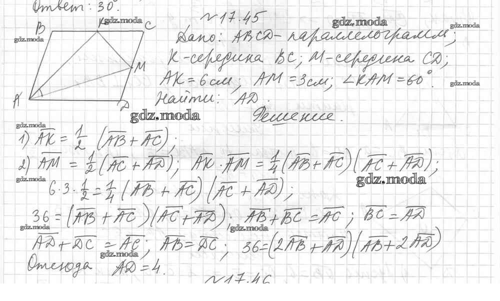 ОТВЕТ на задание № 17.45 Учебник по Геометрии 9 класс Мерзляк Углубленный уровень