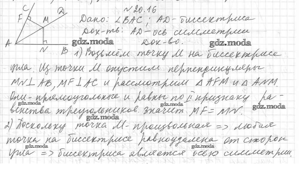 ОТВЕТ на задание № 20.16 Учебник по Геометрии 9 класс Мерзляк Углубленный уровень