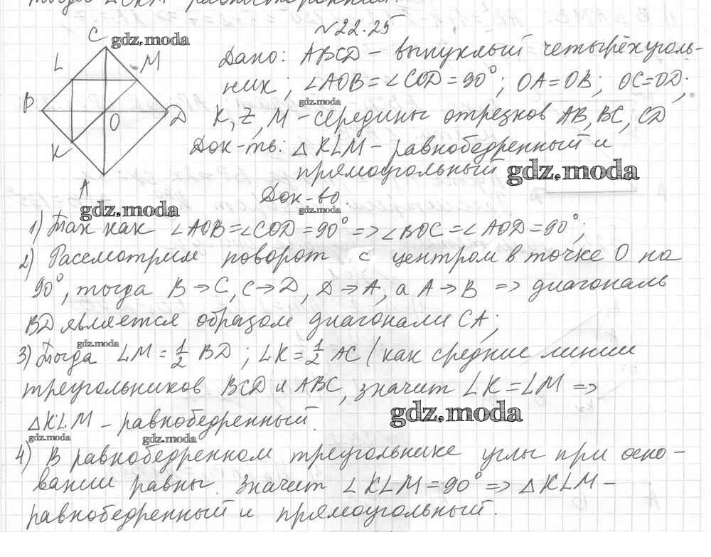 ОТВЕТ на задание № 22.25 Учебник по Геометрии 9 класс Мерзляк Углубленный уровень