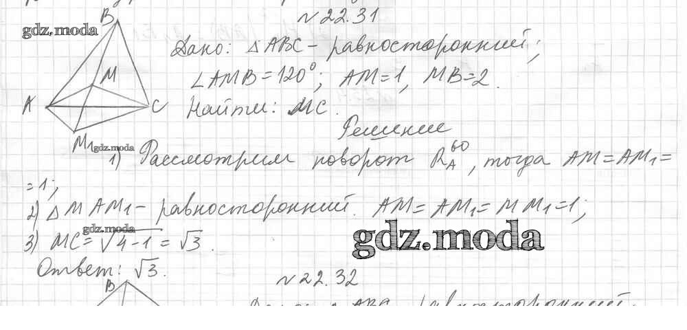ОТВЕТ на задание № 22.31 Учебник по Геометрии 9 класс Мерзляк Углубленный уровень