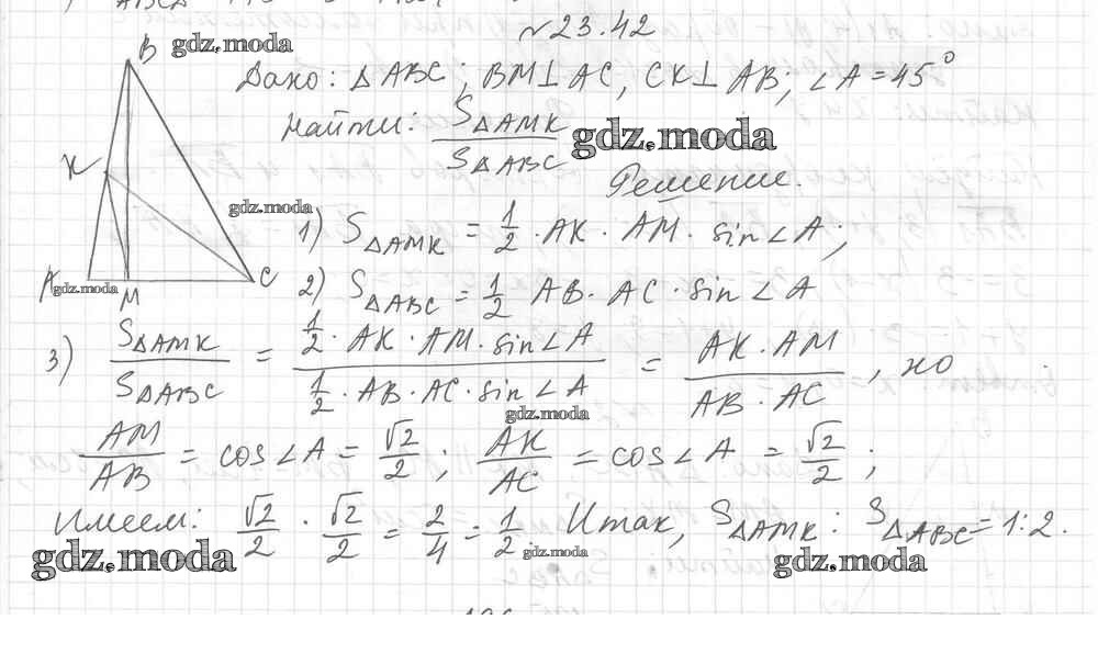 ОТВЕТ на задание № 23.42 Учебник по Геометрии 9 класс Мерзляк Углубленный уровень