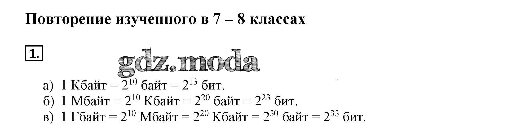 ГДЗ решение к заданию № 1 Информатика 9 класс рабочая тетрадь Босова Л.Л. Бином 2017 Часть 1, Часть 2 Базовый и углубленный уровень ФГОС бесплатно на гдз.мода!