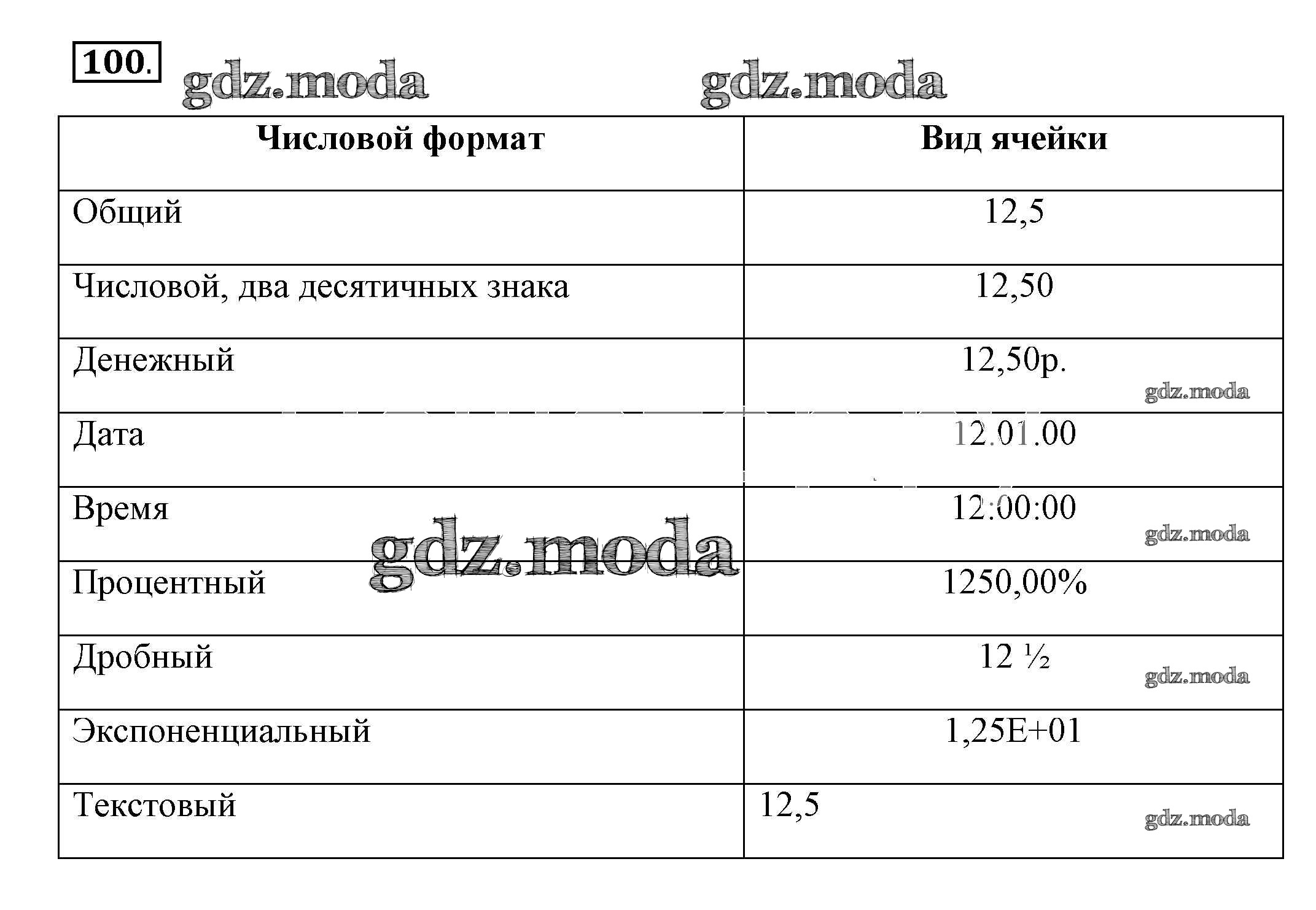 ГДЗ решение к заданию № 100 Информатика 9 класс рабочая тетрадь Босова Л.Л. Бином 2017 Часть 1, Часть 2 Базовый и углубленный уровень ФГОС бесплатно на гдз.мода!