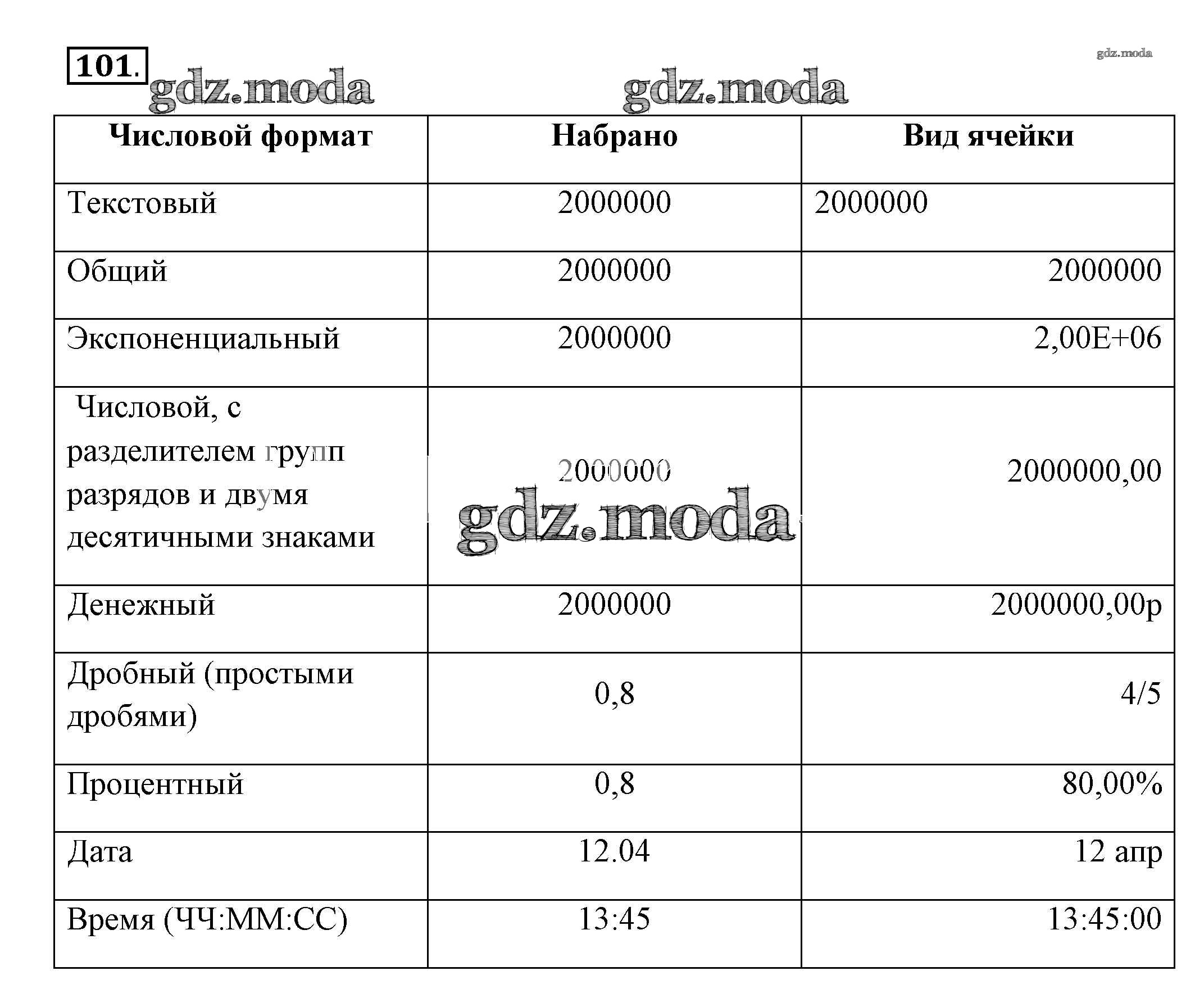 ГДЗ решение к заданию № 101 Информатика 9 класс рабочая тетрадь Босова Л.Л. Бином 2017 Часть 1, Часть 2 Базовый и углубленный уровень ФГОС бесплатно на гдз.мода!