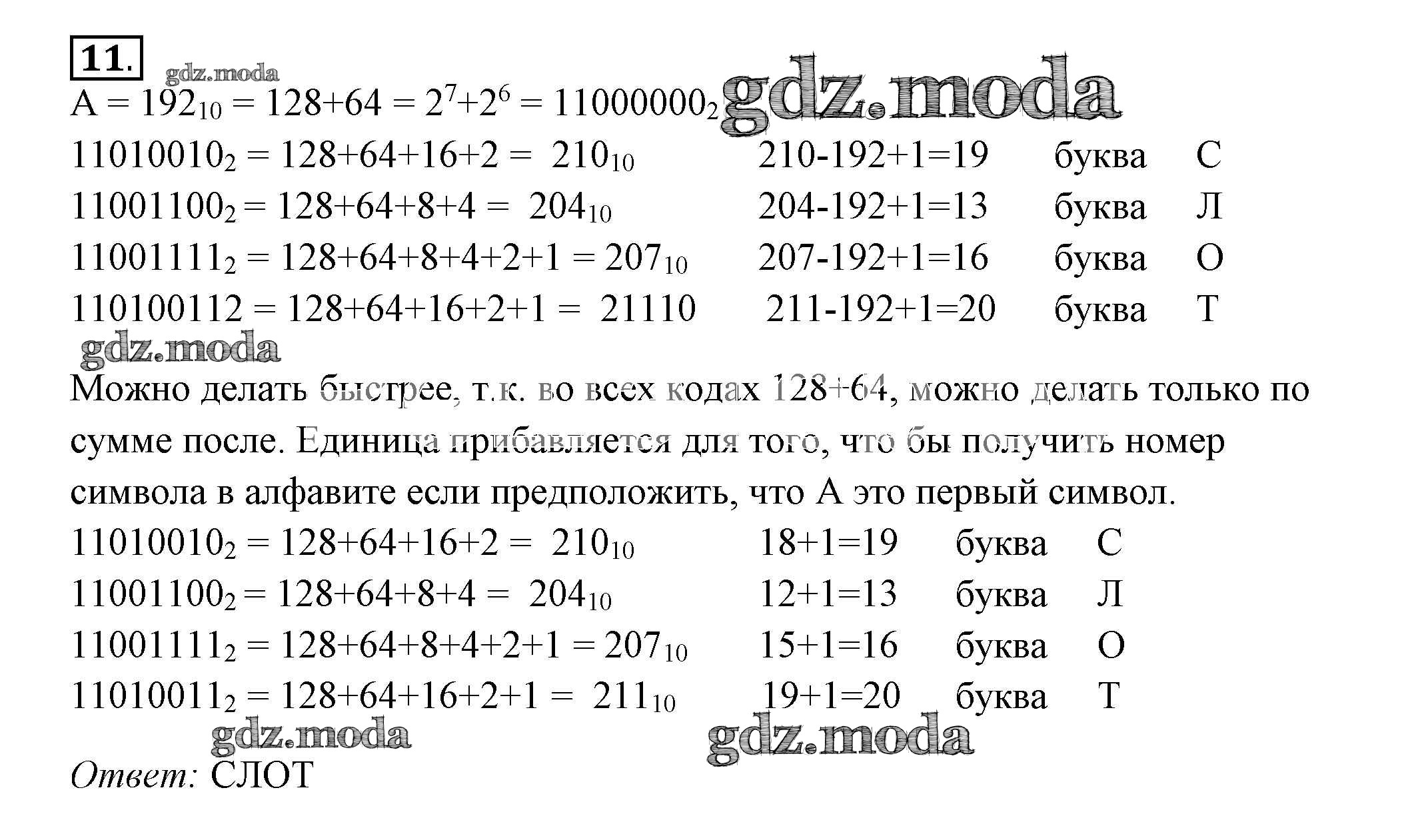 ГДЗ решение к заданию № 11 Информатика 9 класс рабочая тетрадь Босова Л.Л. Бином 2017 Часть 1, Часть 2 Базовый и углубленный уровень ФГОС бесплатно на гдз.мода!