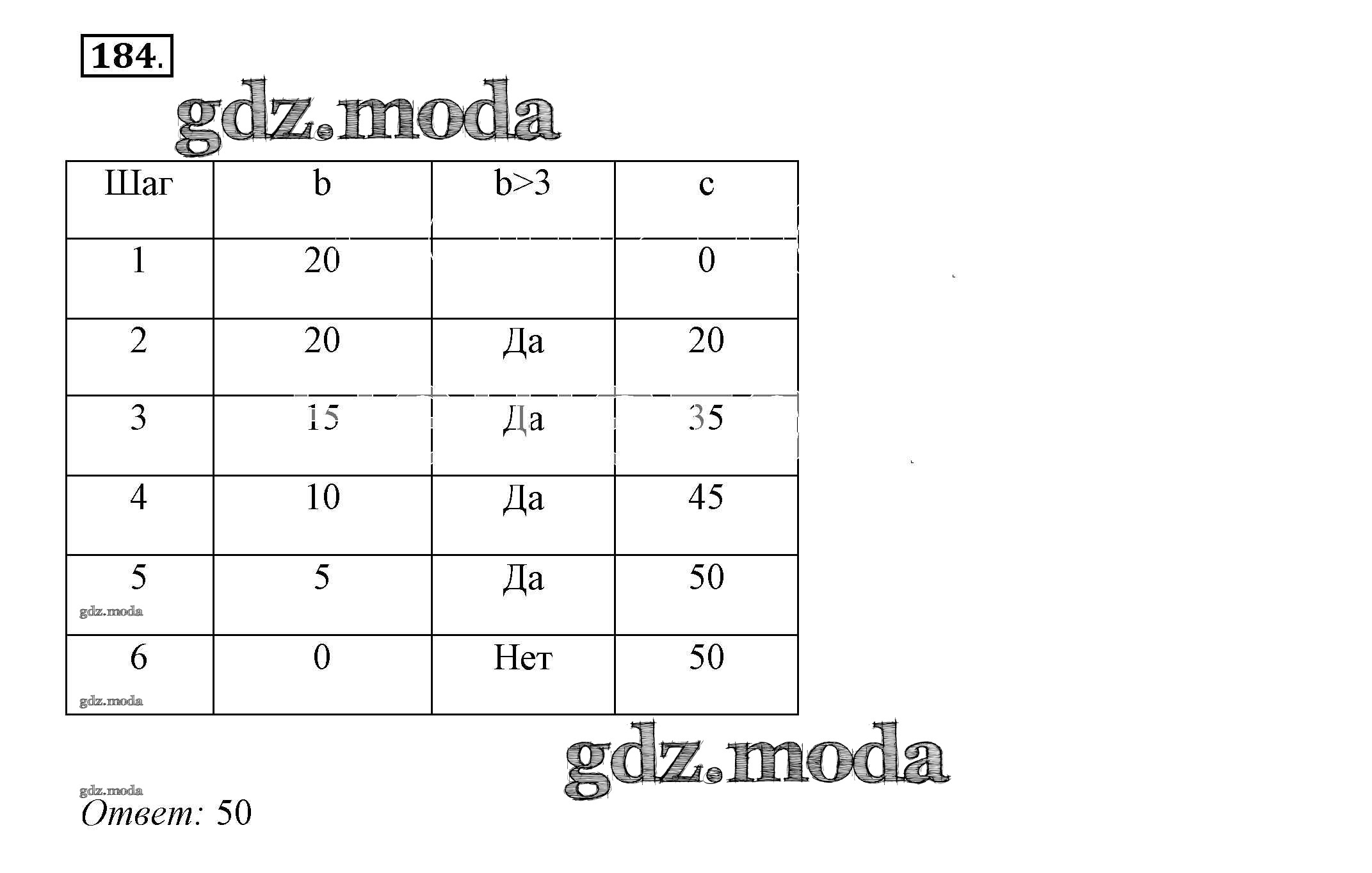ГДЗ решение к заданию № 184 Информатика 9 класс рабочая тетрадь Босова Л.Л. Бином 2017 Часть 1, Часть 2 Базовый и углубленный уровень ФГОС бесплатно на гдз.мода!