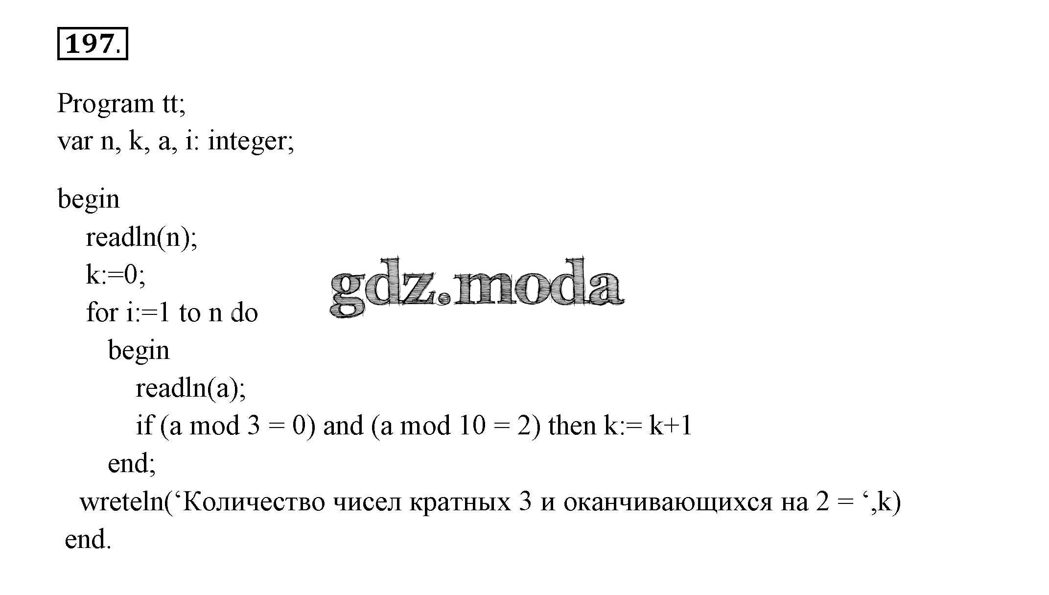 ГДЗ решение к заданию № 197 Информатика 9 класс рабочая тетрадь Босова Л.Л. Бином 2017 Часть 1, Часть 2 Базовый и углубленный уровень ФГОС бесплатно на гдз.мода!