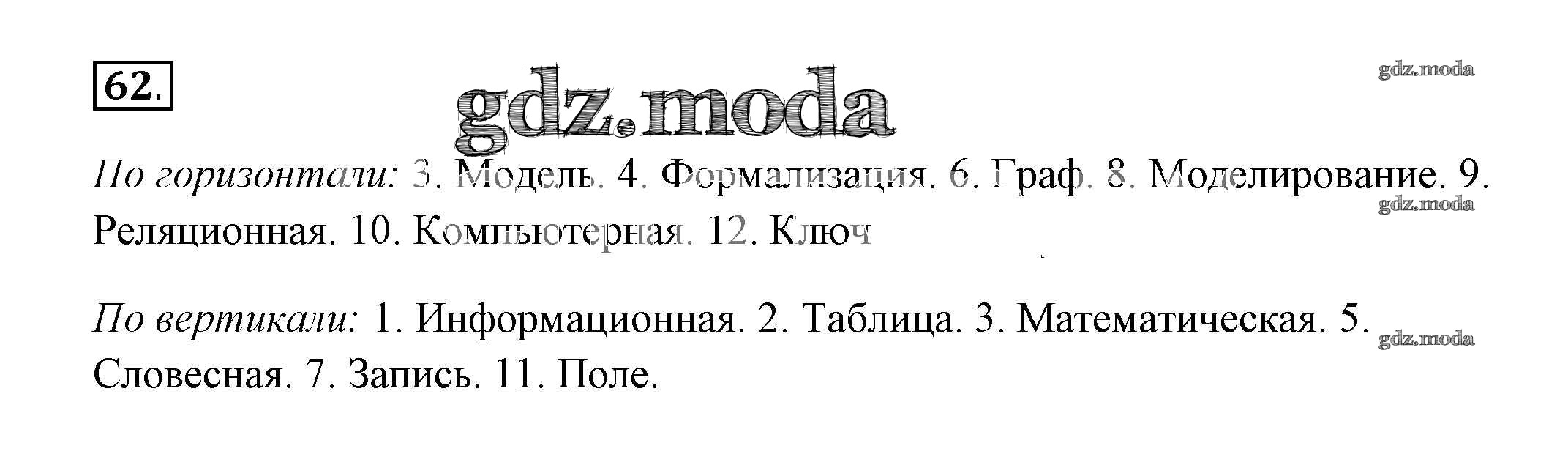 ГДЗ решение к заданию № 62 Информатика 9 класс рабочая тетрадь Босова Л.Л. Бином 2017 Часть 1, Часть 2 Базовый и углубленный уровень ФГОС бесплатно на гдз.мода!
