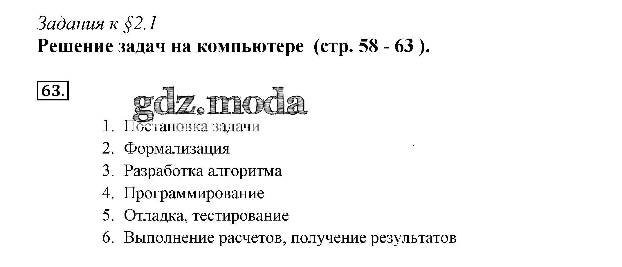 ГДЗ решение к заданию № 63 Информатика 9 класс рабочая тетрадь Босова Л.Л. Бином 2017 Часть 1, Часть 2 Базовый и углубленный уровень ФГОС бесплатно на гдз.мода!