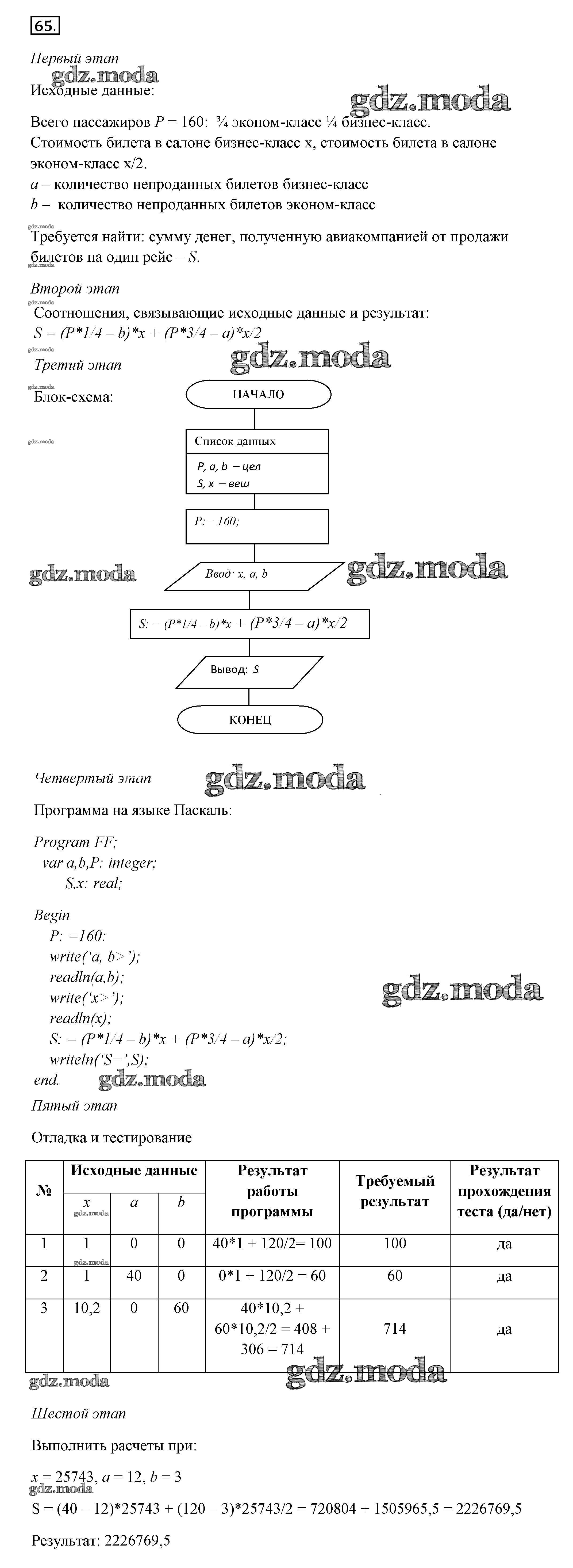 ГДЗ решение к заданию № 65 Информатика 9 класс рабочая тетрадь Босова Л.Л. Бином 2017 Часть 1, Часть 2 Базовый и углубленный уровень ФГОС бесплатно на гдз.мода!