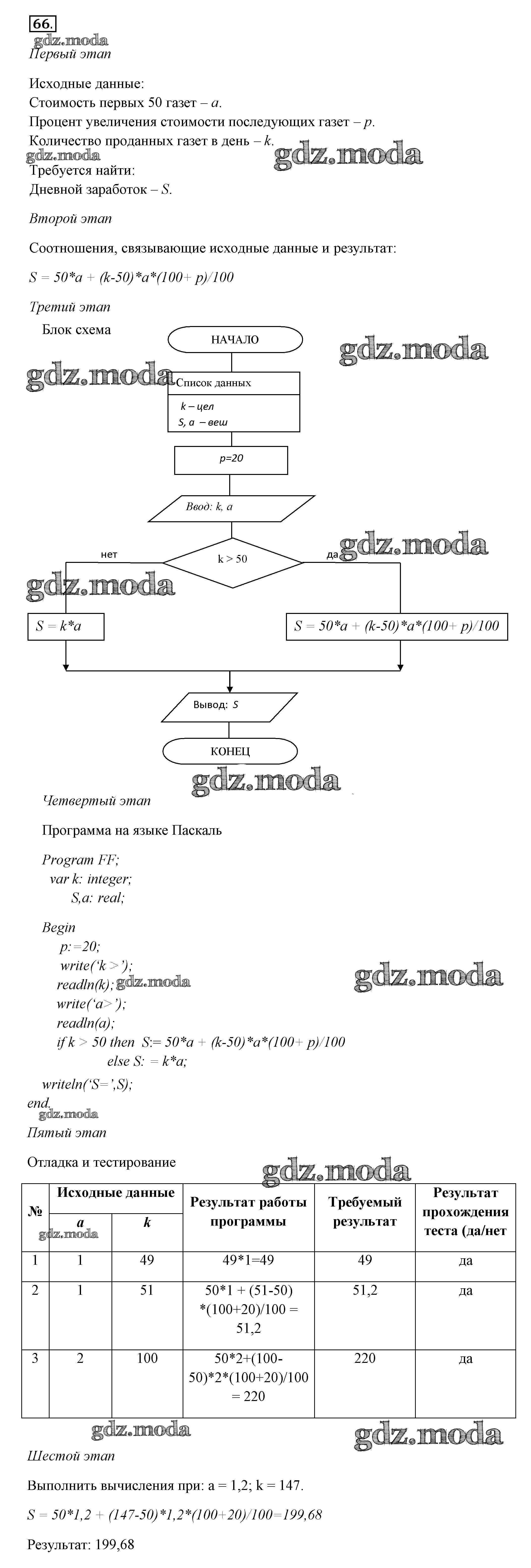 ГДЗ решение к заданию № 66 Информатика 9 класс рабочая тетрадь Босова Л.Л. Бином 2017 Часть 1, Часть 2 Базовый и углубленный уровень ФГОС бесплатно на гдз.мода!