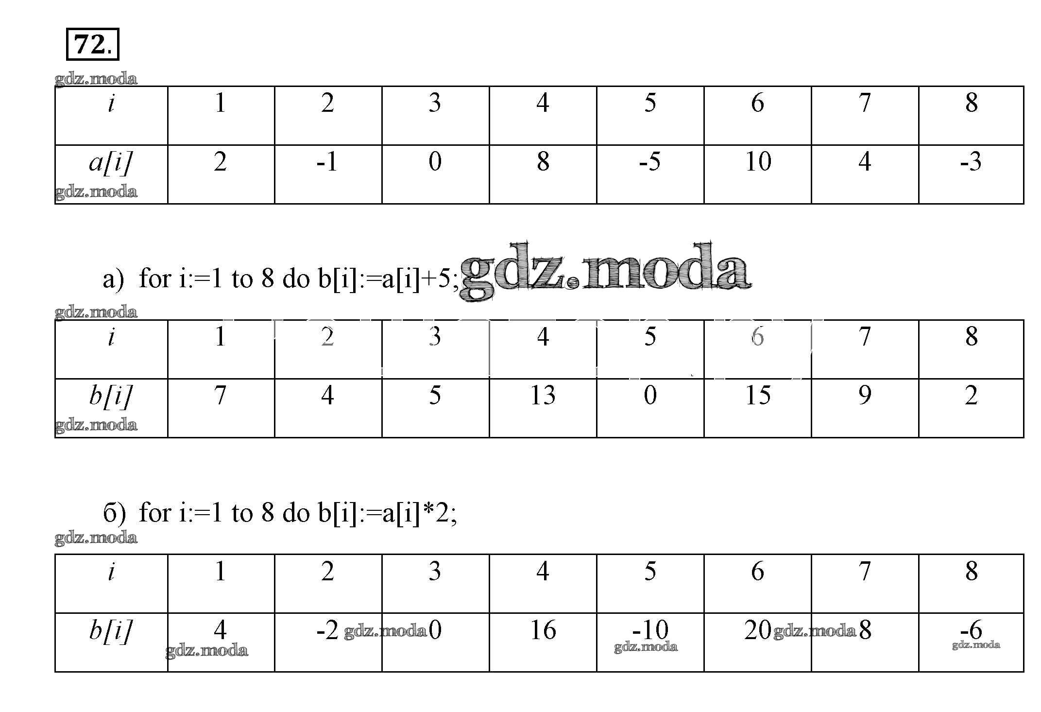 ГДЗ решение к заданию № 72 Информатика 9 класс рабочая тетрадь Босова Л.Л. Бином 2017 Часть 1, Часть 2 Базовый и углубленный уровень ФГОС бесплатно на гдз.мода!
