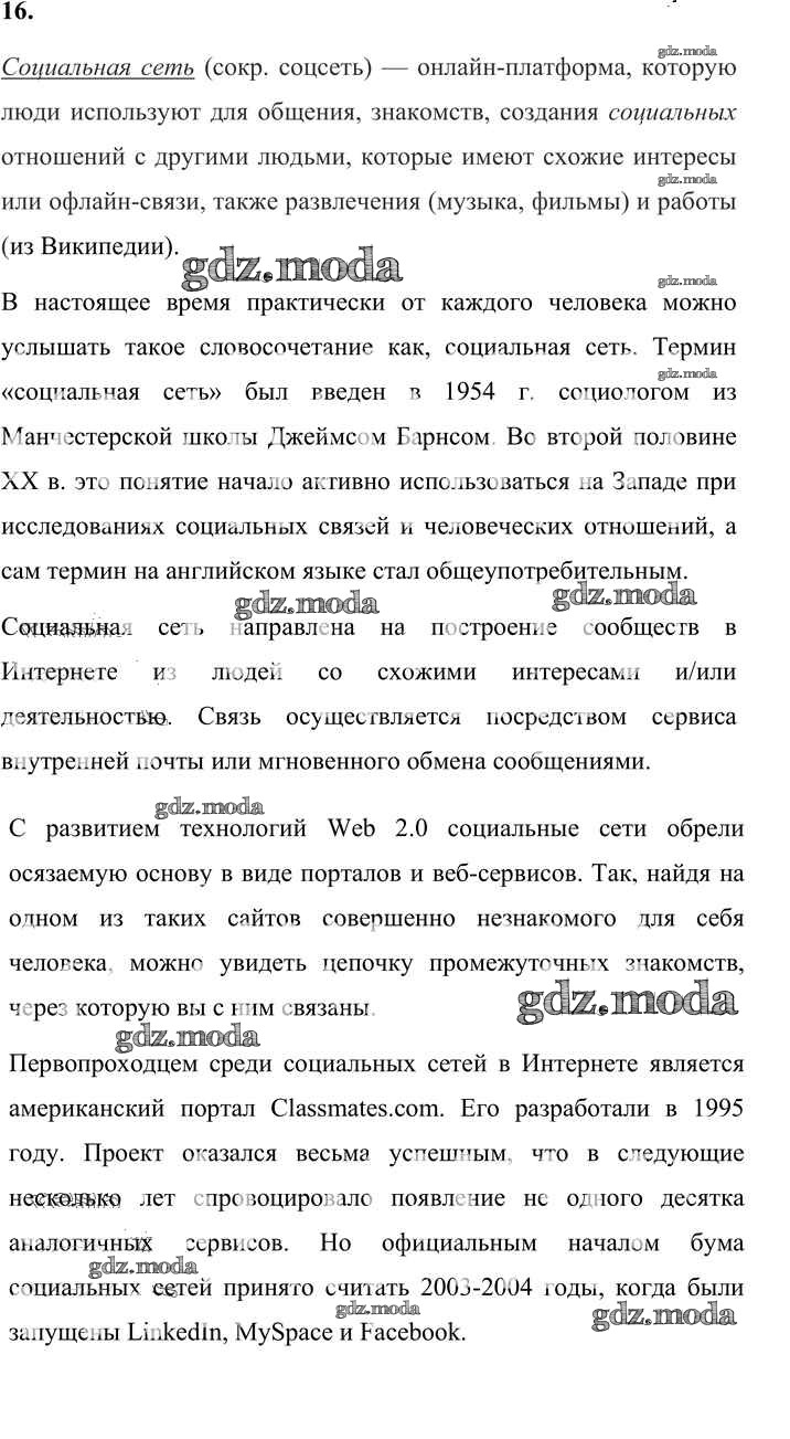 ОТВЕТ на задание № 16 Учебник по Информатике 9 класс Босова