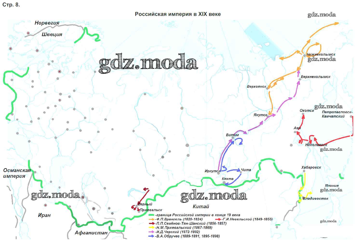 ГДЗ решение к заданию № 8 История 9 класс атлас с комплектом контурных карт. Отечественная история XIX век Стоялова Н.Д. ФГУП Омская картографическая фабрика 2019 ФГОС бесплатно на гдз.мода!