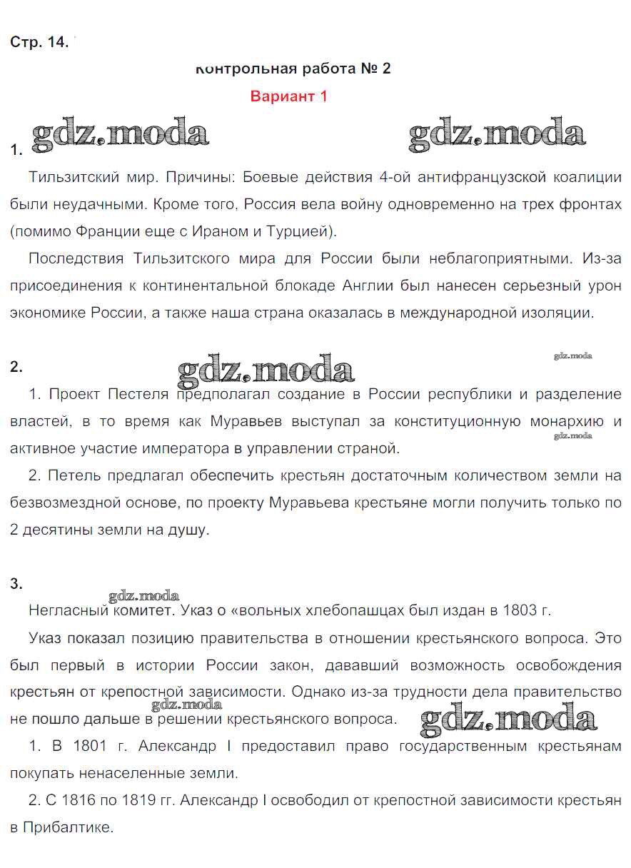 ГДЗ решение к заданию № 14 История России 9 класс контрольные работы Артасов И.А. Просвещение 2017 ФГОС бесплатно на гдз.мода!