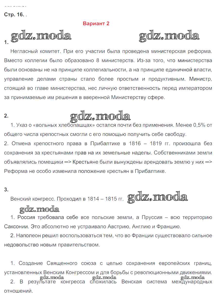 ГДЗ решение к заданию № 16 История России 9 класс контрольные работы Артасов И.А. Просвещение 2017 ФГОС бесплатно на гдз.мода!