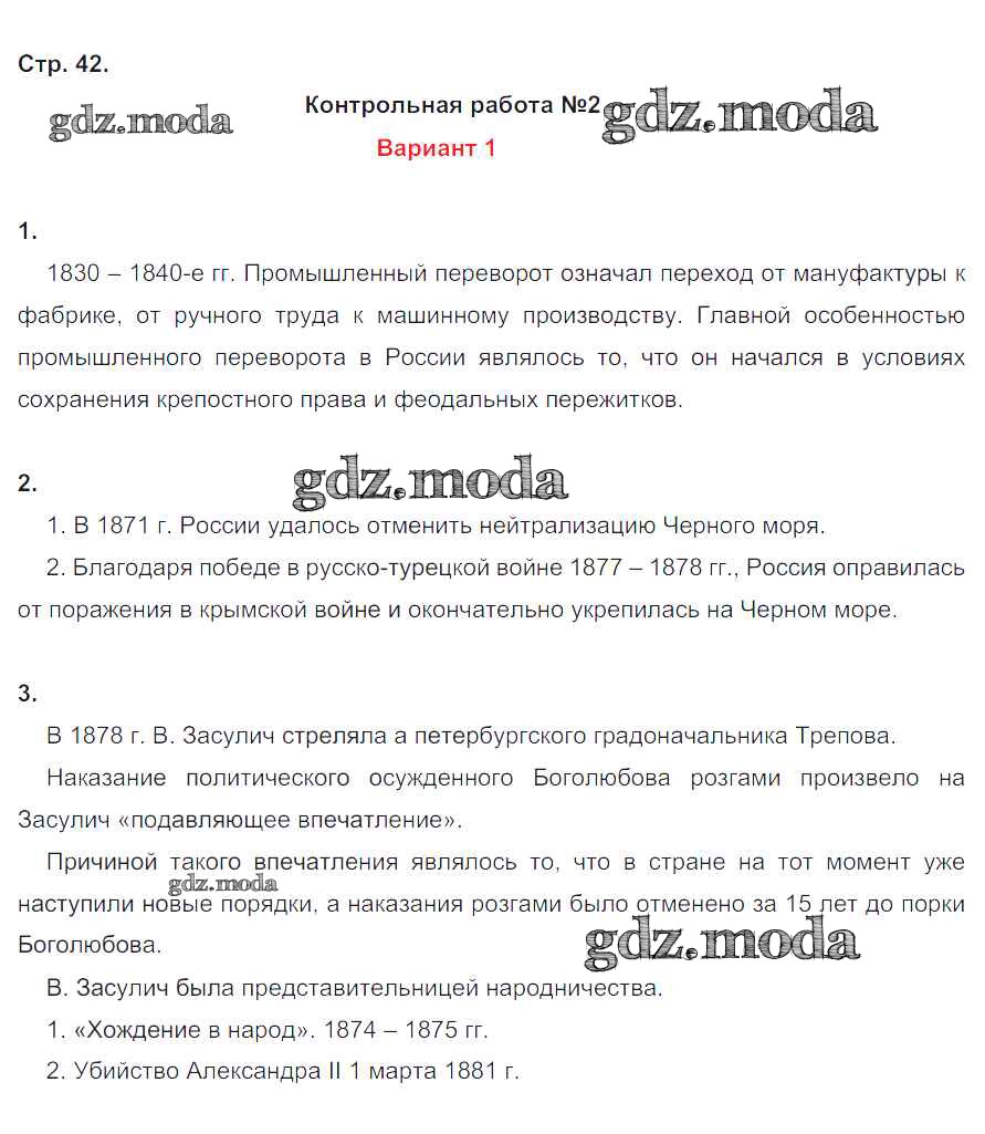 ГДЗ решение к заданию № 42 История России 9 класс контрольные работы Артасов И.А. Просвещение 2017 ФГОС бесплатно на гдз.мода!