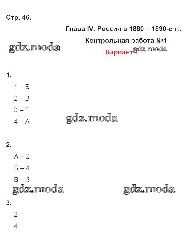 ГДЗ решение к заданию № 46 История России 9 класс контрольные работы Артасов И.А. Просвещение 2017 ФГОС бесплатно на гдз.мода!