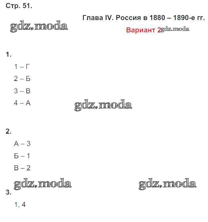 ГДЗ решение к заданию № 51 История России 9 класс контрольные работы Артасов И.А. Просвещение 2017 ФГОС бесплатно на гдз.мода!