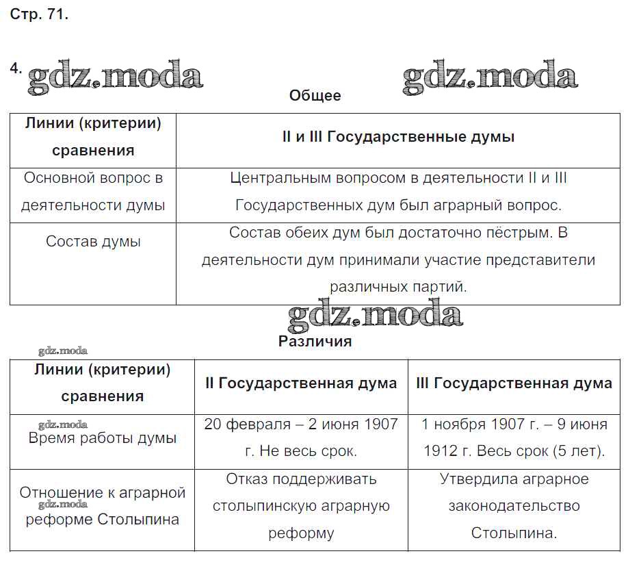 ГДЗ решение к заданию № 71 История России 9 класс контрольные работы Артасов И.А. Просвещение 2017 ФГОС бесплатно на гдз.мода!