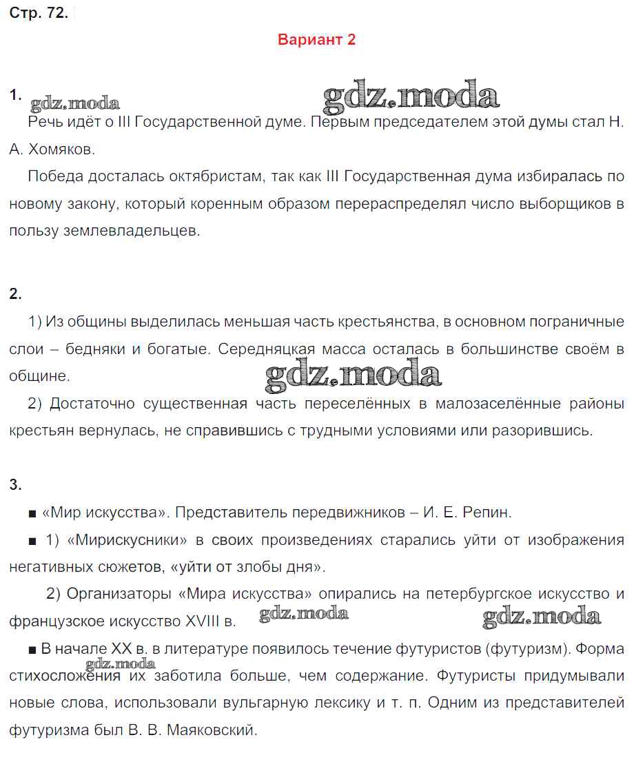 ГДЗ решение к заданию № 72 История России 9 класс контрольные работы Артасов И.А. Просвещение 2017 ФГОС бесплатно на гдз.мода!