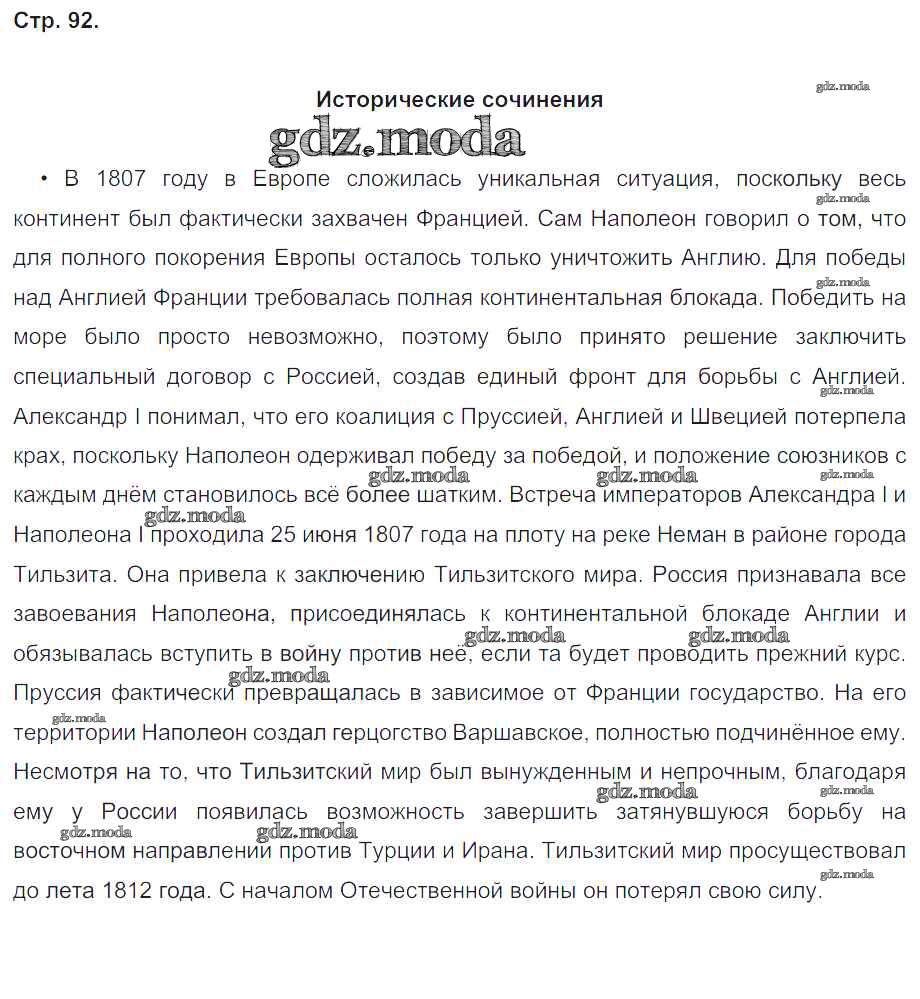 ГДЗ решение к заданию № 92 История России 9 класс контрольные работы Артасов И.А. Просвещение 2017 ФГОС бесплатно на гдз.мода!