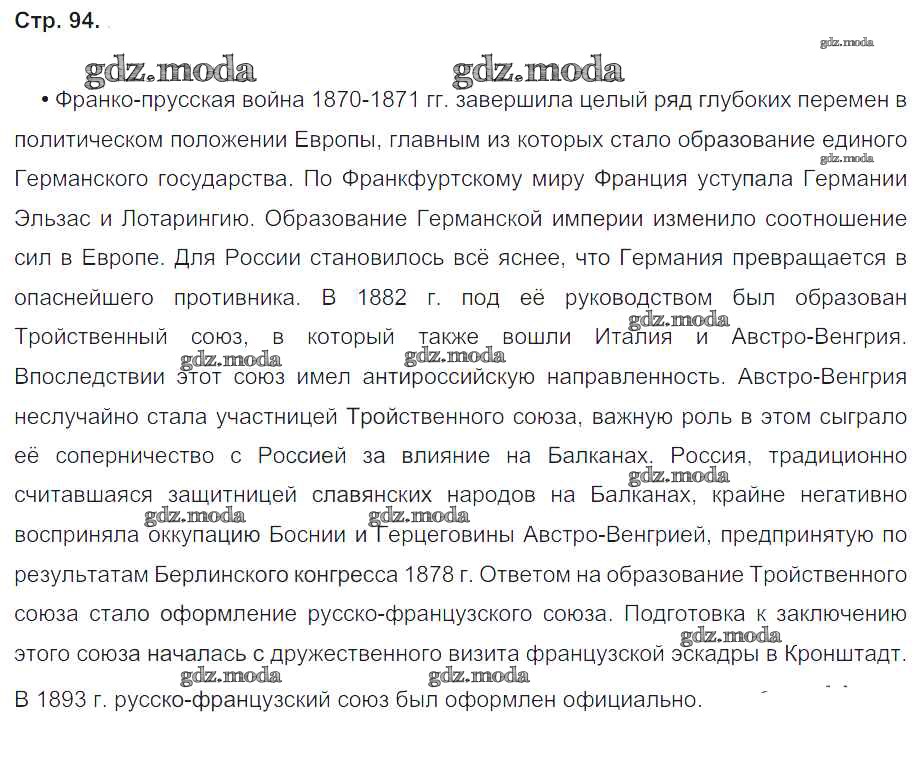 ГДЗ решение к заданию № 94 История России 9 класс контрольные работы Артасов И.А. Просвещение 2017 ФГОС бесплатно на гдз.мода!
