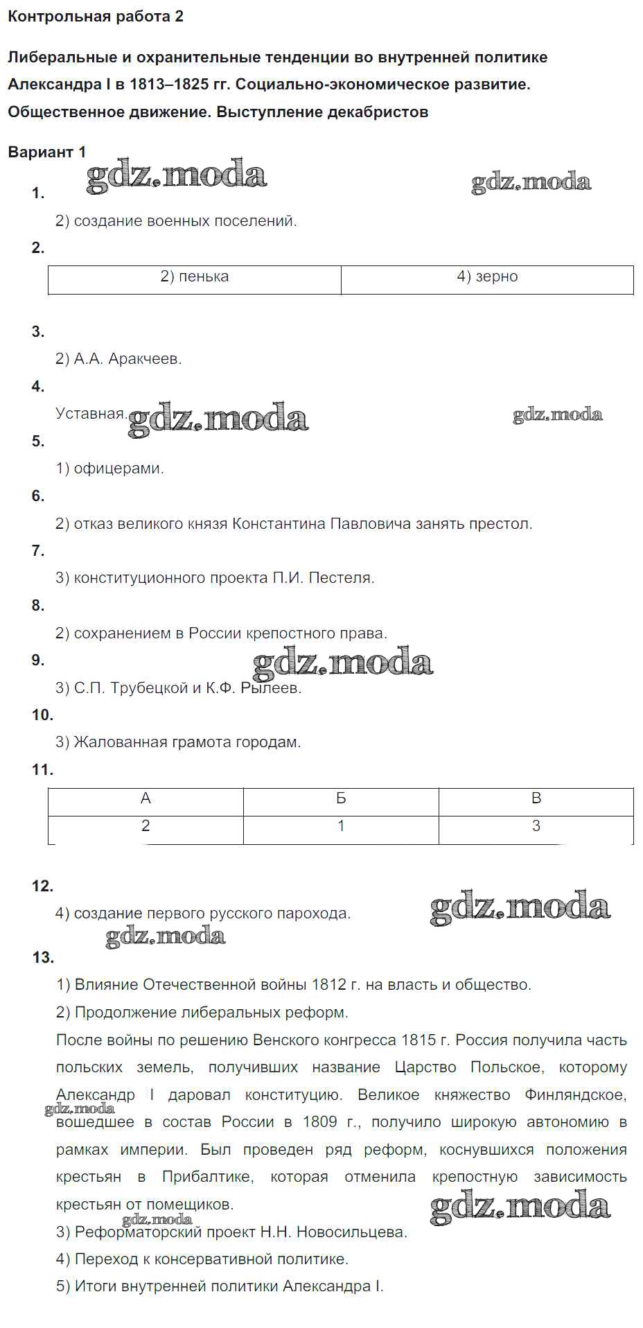 ГДЗ решение к заданию № 1 История России 9 класс контрольные работы Соловьёв Я.В.(к уч. Торкунова А.В.) Экзамен 2020 ФГОС бесплатно на гдз.мода!