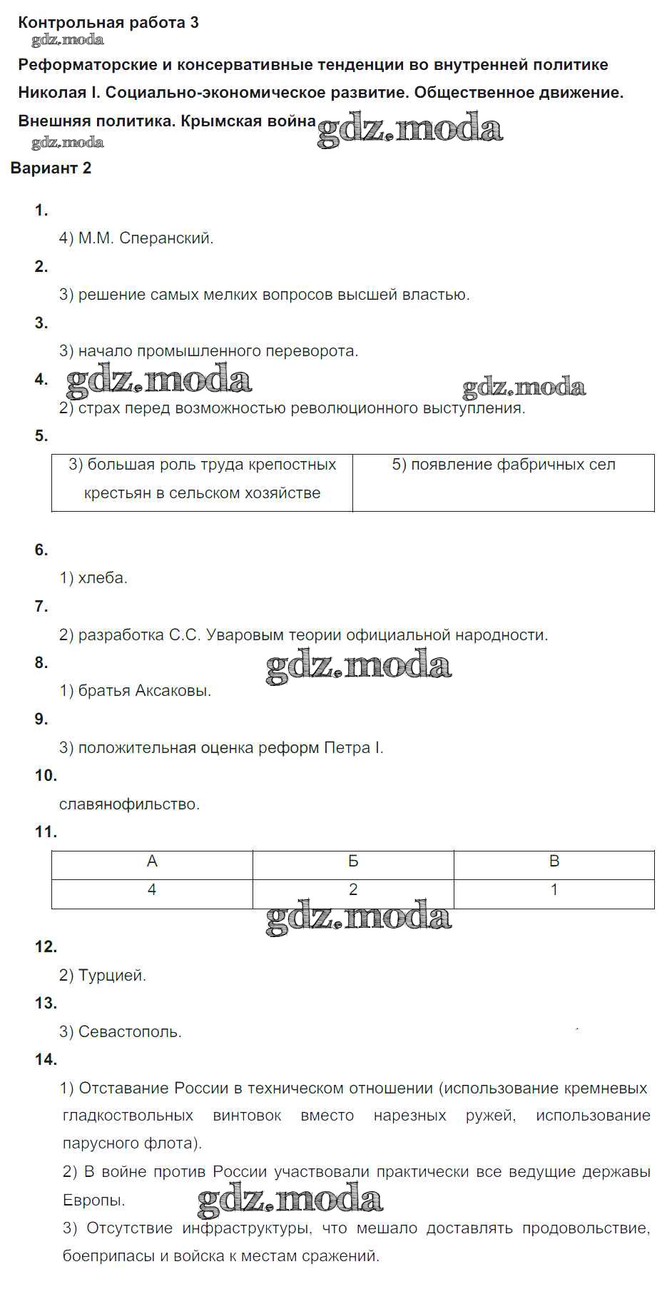 ГДЗ решение к заданию № 2 История России 9 класс контрольные работы Соловьёв Я.В.(к уч. Торкунова А.В.) Экзамен 2020 ФГОС бесплатно на гдз.мода!