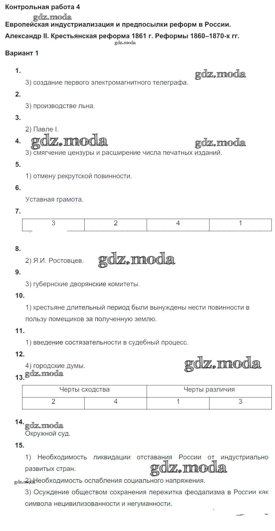 ГДЗ решение к заданию № 1 История России 9 класс контрольные работы Соловьёв Я.В.(к уч. Торкунова А.В.) Экзамен 2020 ФГОС бесплатно на гдз.мода!