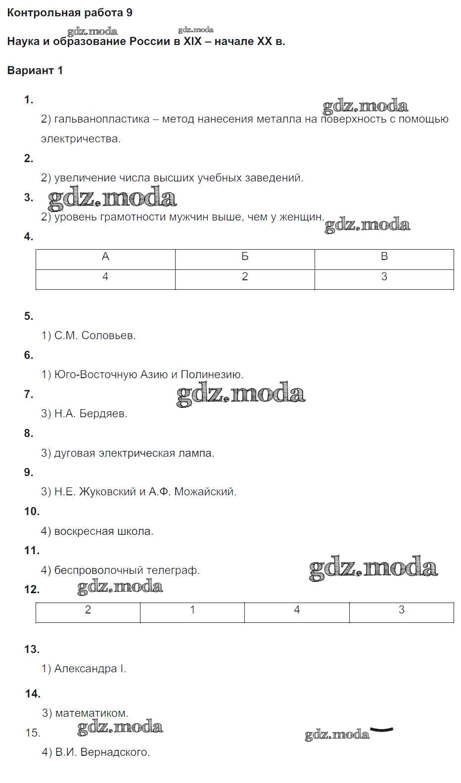 ГДЗ решение к заданию № 1 История России 9 класс контрольные работы Соловьёв Я.В.(к уч. Торкунова А.В.) Экзамен 2020 ФГОС бесплатно на гдз.мода!