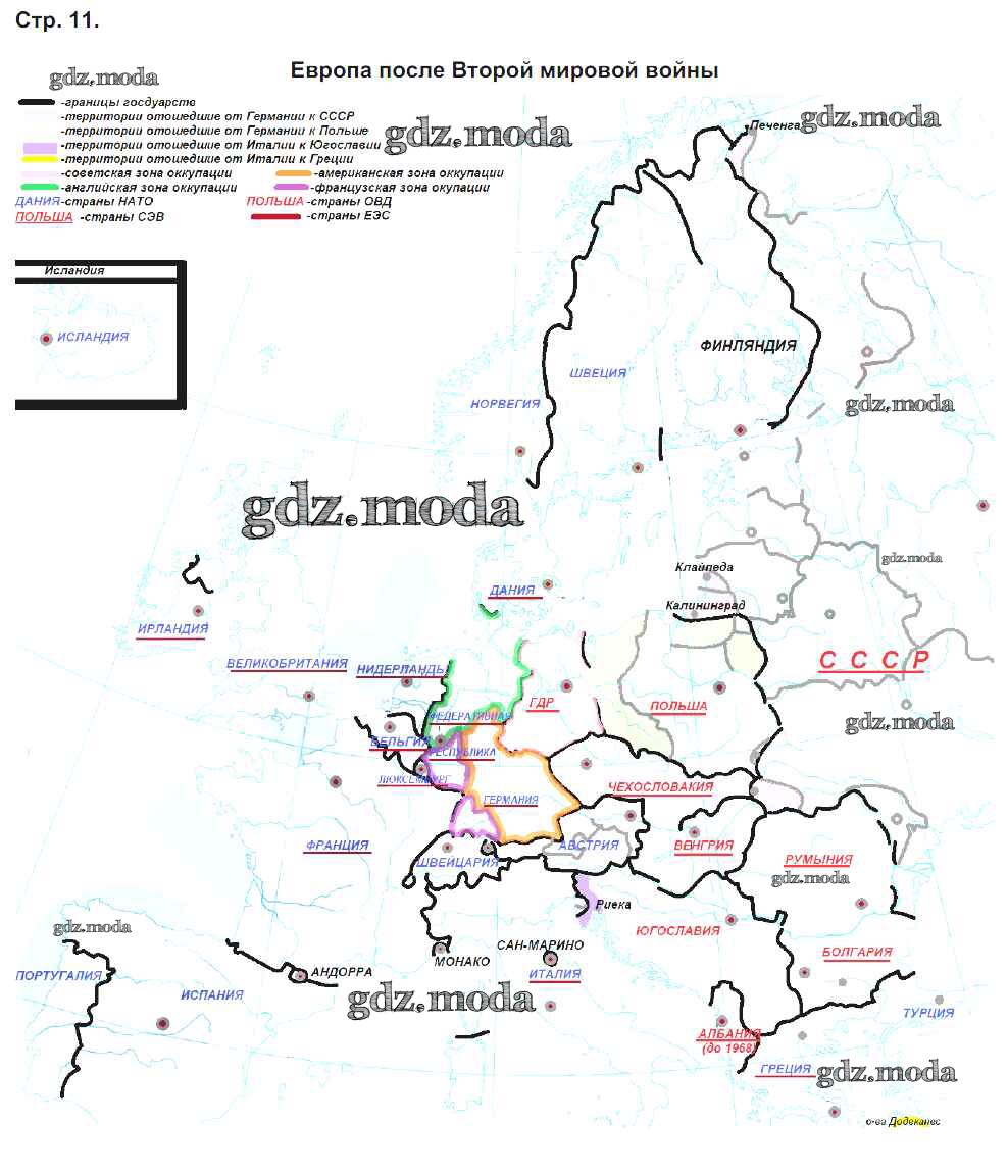 ГДЗ решение к заданию № 11 История 9 класс контурные карты Курбский Н.А. Дрофа 2018 ФГОС бесплатно на гдз.мода!