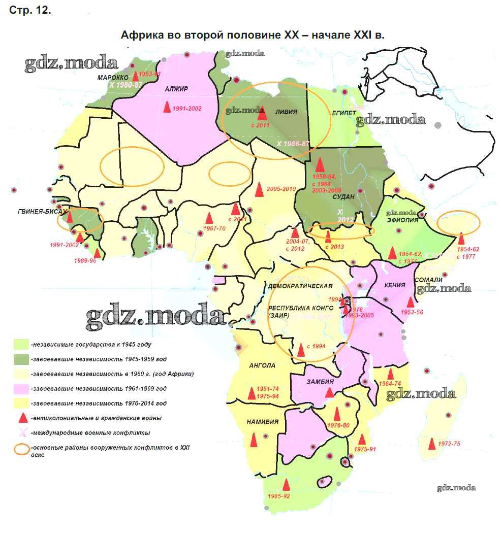 ГДЗ решение к заданию № 12 История 9 класс контурные карты Курбский Н.А. Дрофа 2018 ФГОС бесплатно на гдз.мода!