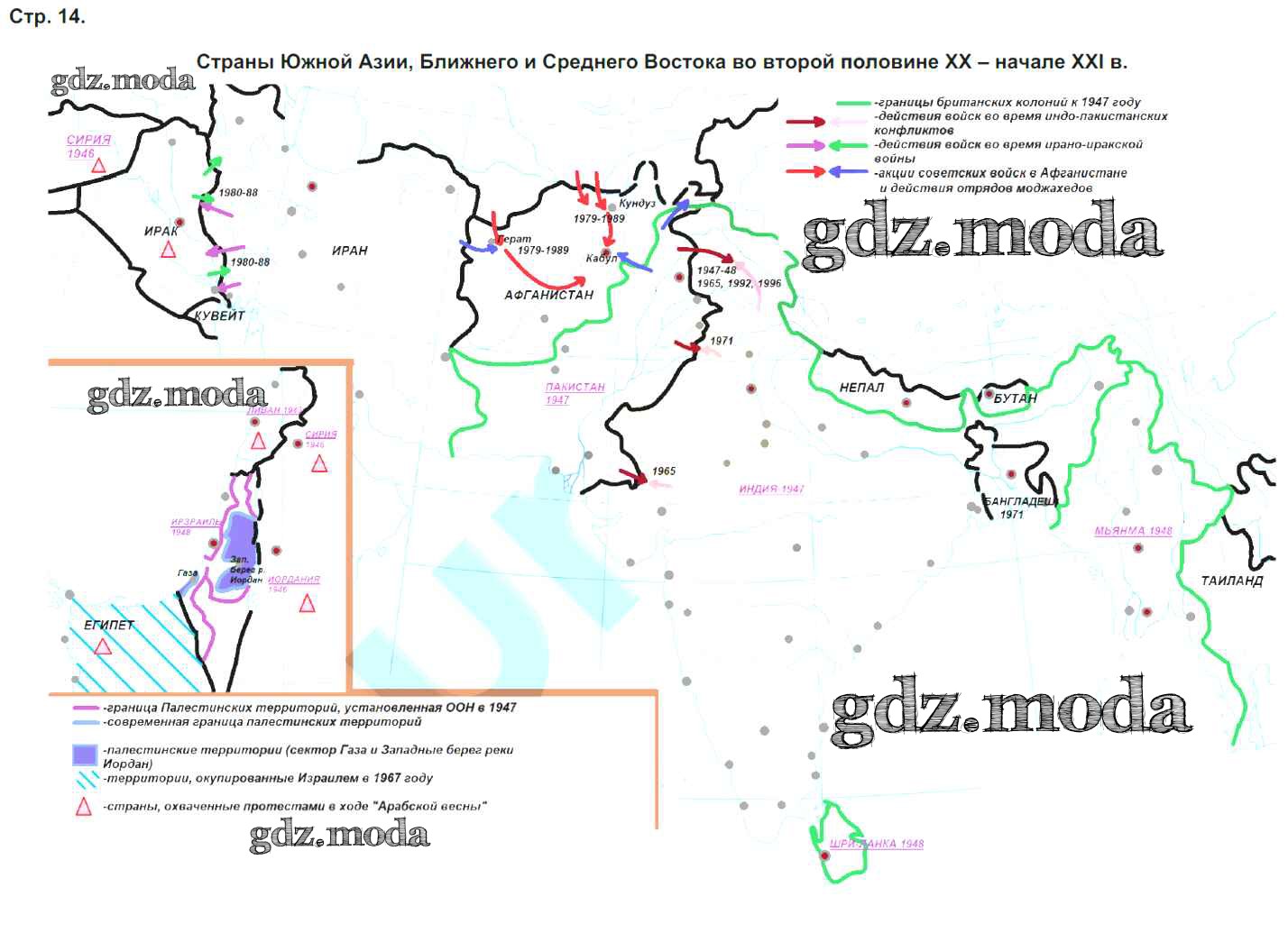 ГДЗ решение к заданию № 14 История 9 класс контурные карты Курбский Н.А. Дрофа 2018 ФГОС бесплатно на гдз.мода!