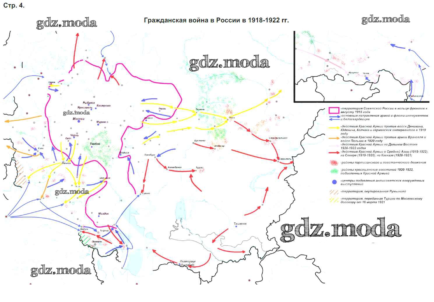 ГДЗ решение к заданию № 4 История 9 класс контурные карты Курбский Н.А. Дрофа 2018 ФГОС бесплатно на гдз.мода!